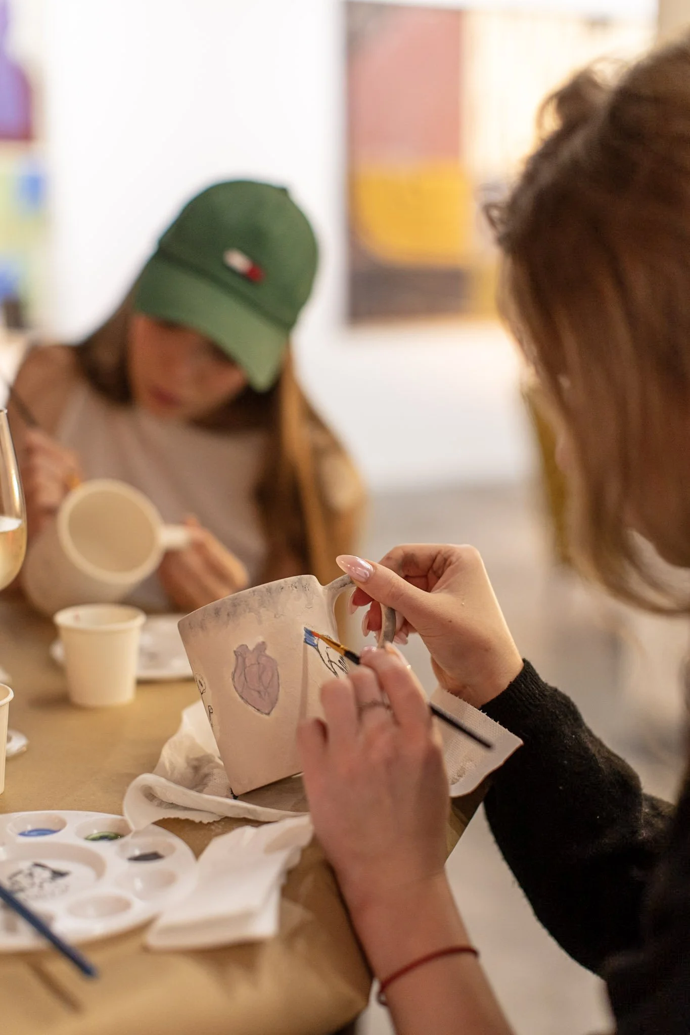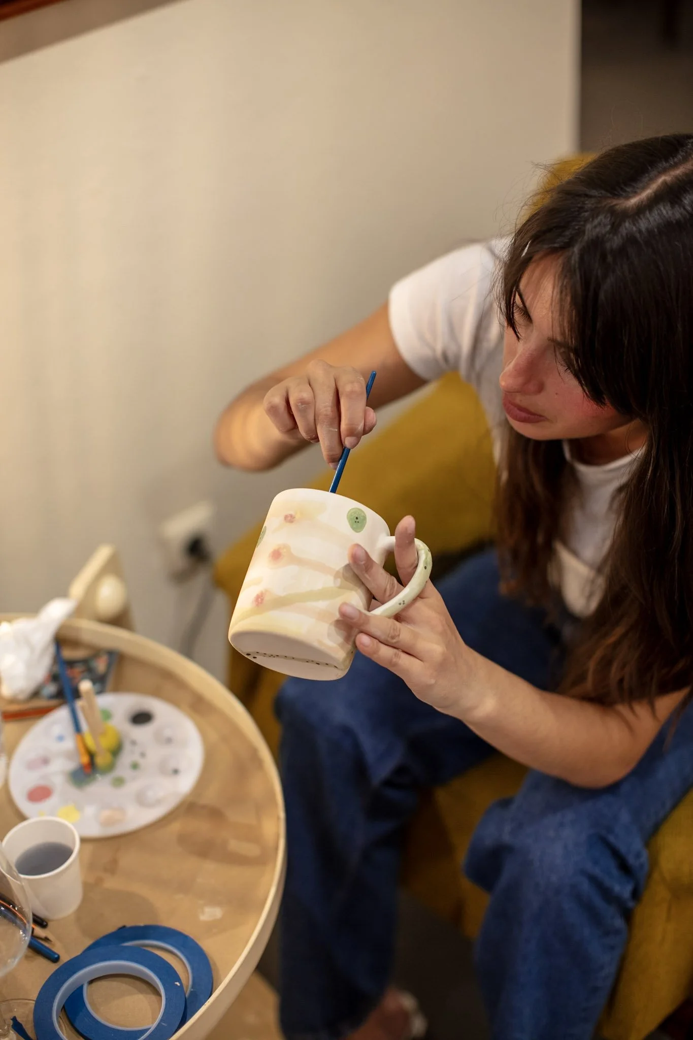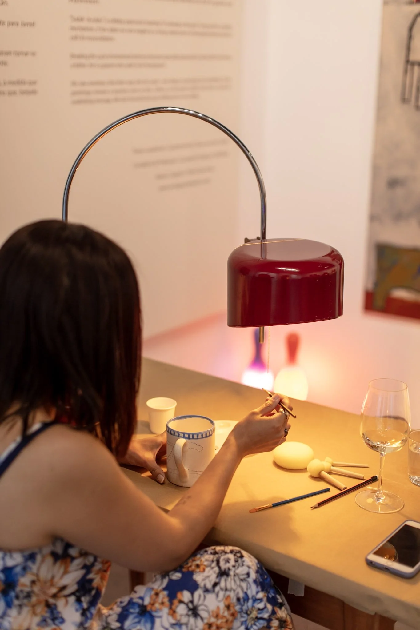Each session opens a new dialogue with the exhibition through the act of painting. Maria Eduarda Pasqualino—who guided Ana Leovy in developing her first-ever ceramic pieces—leads participants in an intuitive exploration of colour and form. A new ceramic format and colour palette is introduced for each session, reflecting the current show. As participants paint, they are invited to observe details and references in the exhibition, creating personal interpretations rooted in their own emotions and experiences.