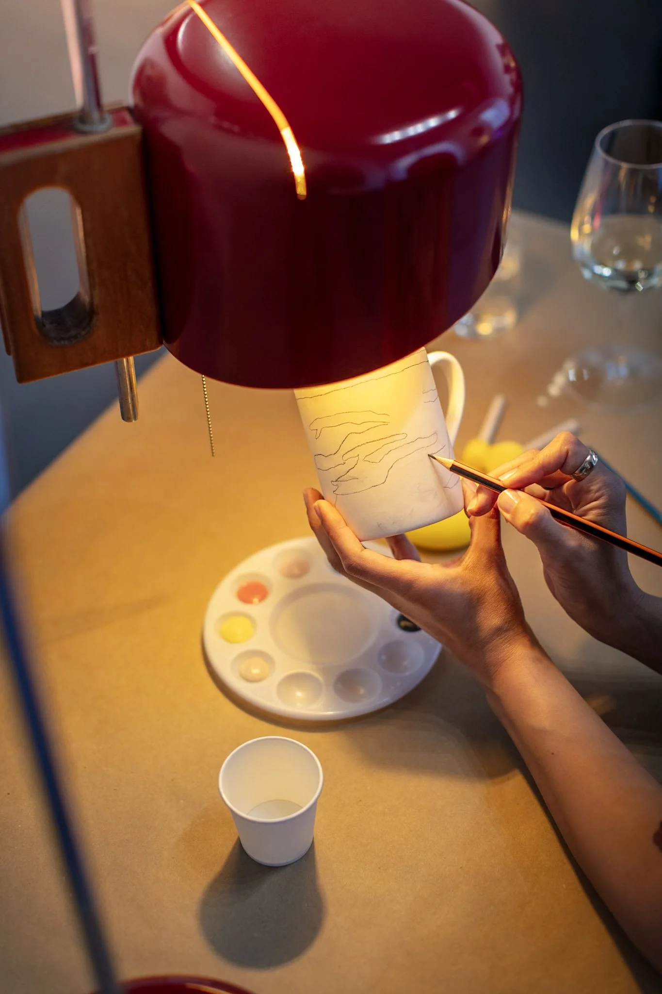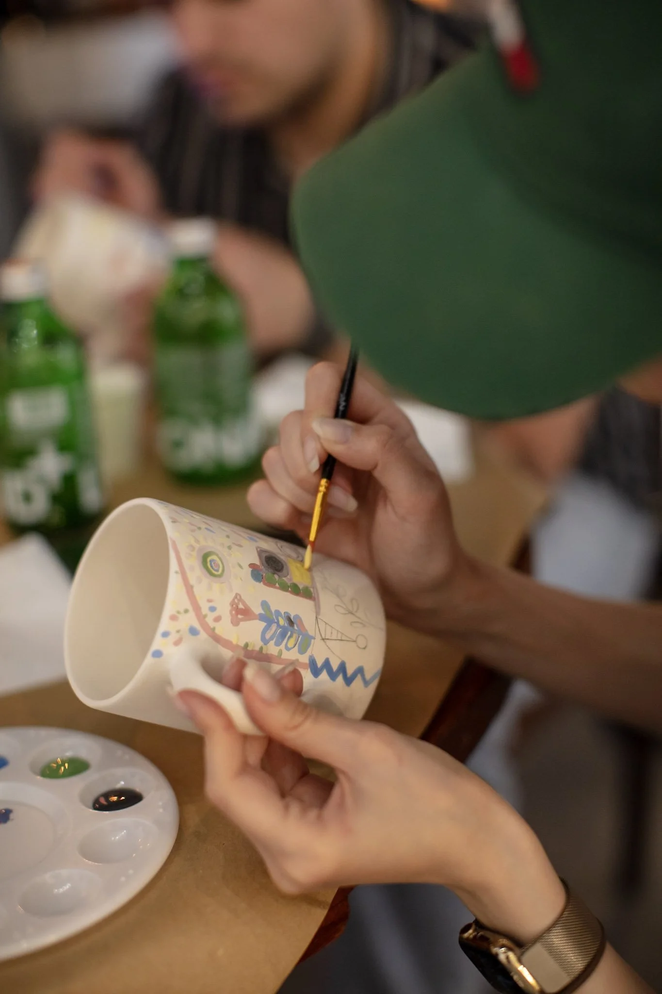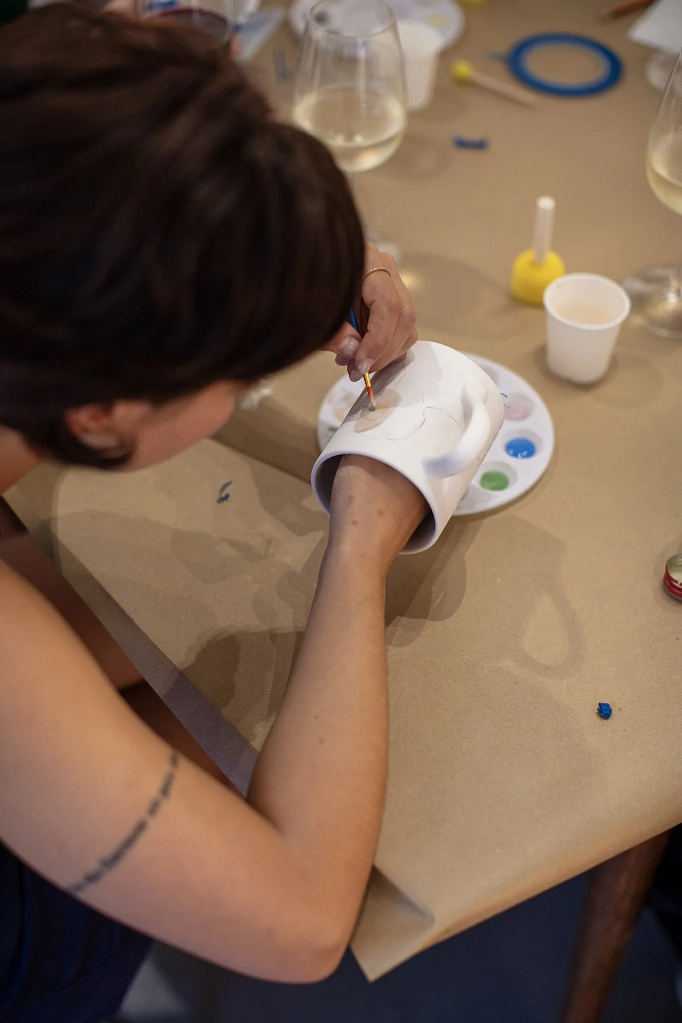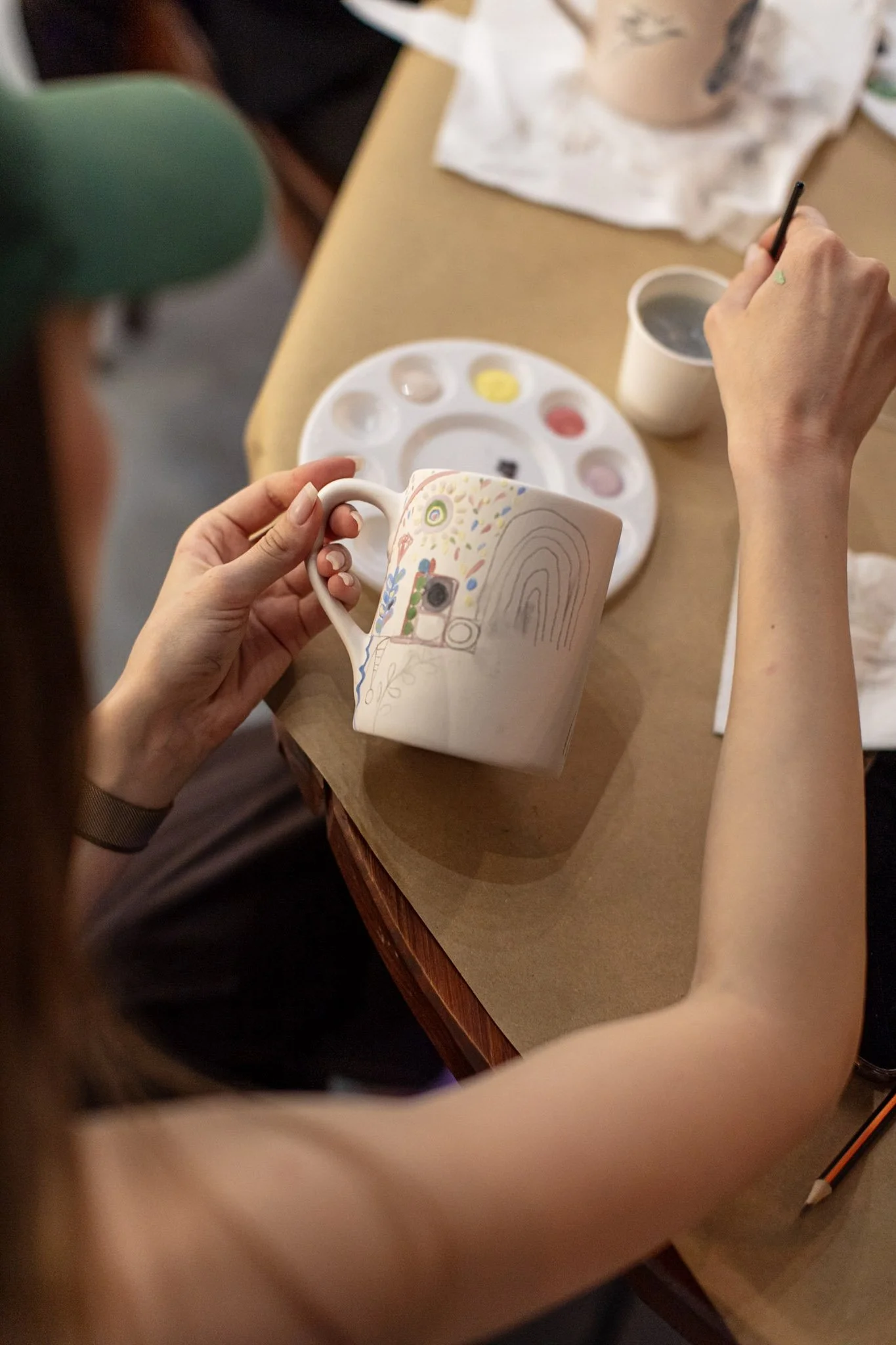 Each session opens a new dialogue with the exhibition through the act of painting. Maria Eduarda Pasqualino—who guided Ana Leovy in developing her first-ever ceramic pieces—leads participants in an intuitive exploration of colour and form. A new ceramic format and colour palette is introduced for each session, reflecting the current show. As participants paint, they are invited to observe details and references in the exhibition, creating personal interpretations rooted in their own emotions and experiences.