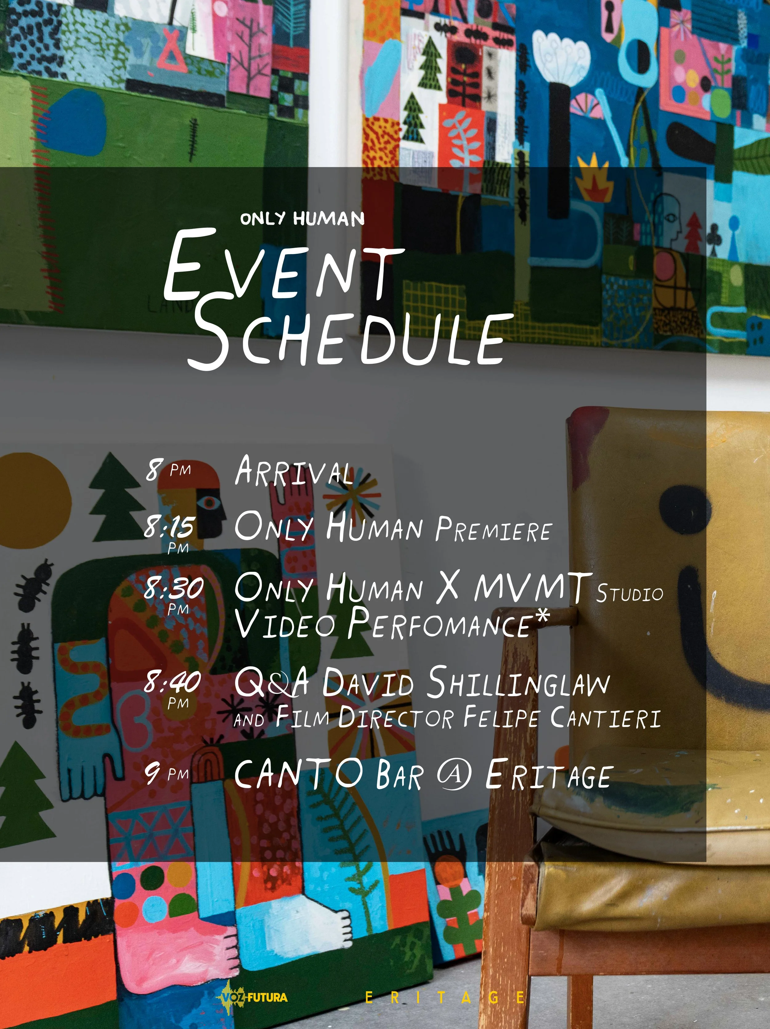 We are very happy to invite you to the premiere of ONLY HUMAN — a documentary developed during the production of David Shillinglaw’s exhibition at Eritage.