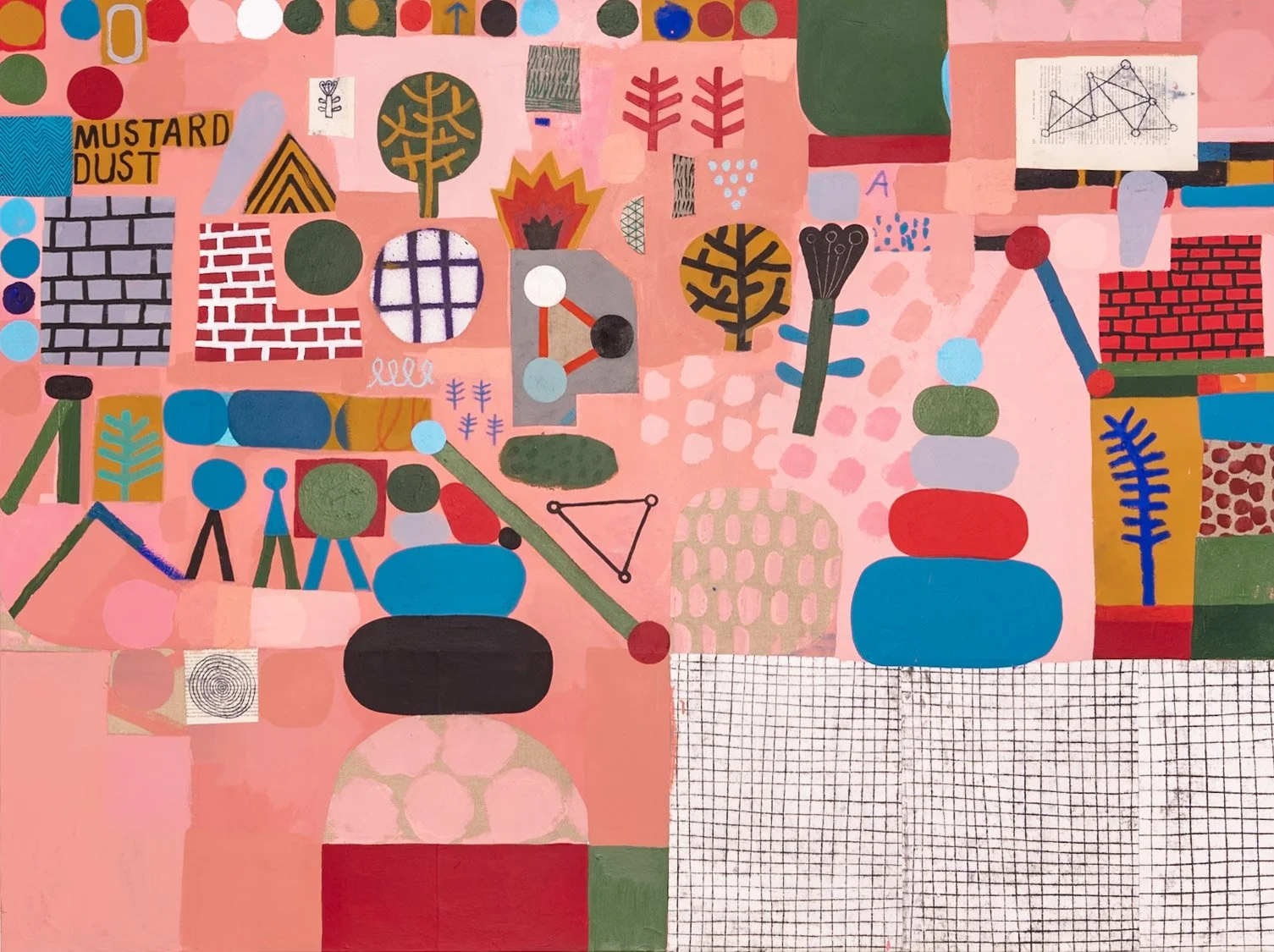 The exhibition transforms the gallery space into a curious and playful environment — echoes of snakes and ladders and ancient hieroglyphics, layered compositions become spaces to get lost in rather than windows to look through. Here, Shillinglaw builds up and breaks down borders and boundaries in a visual dance between destruction and construction, offering playful and poetic alternatives to the structures we have set in stone.