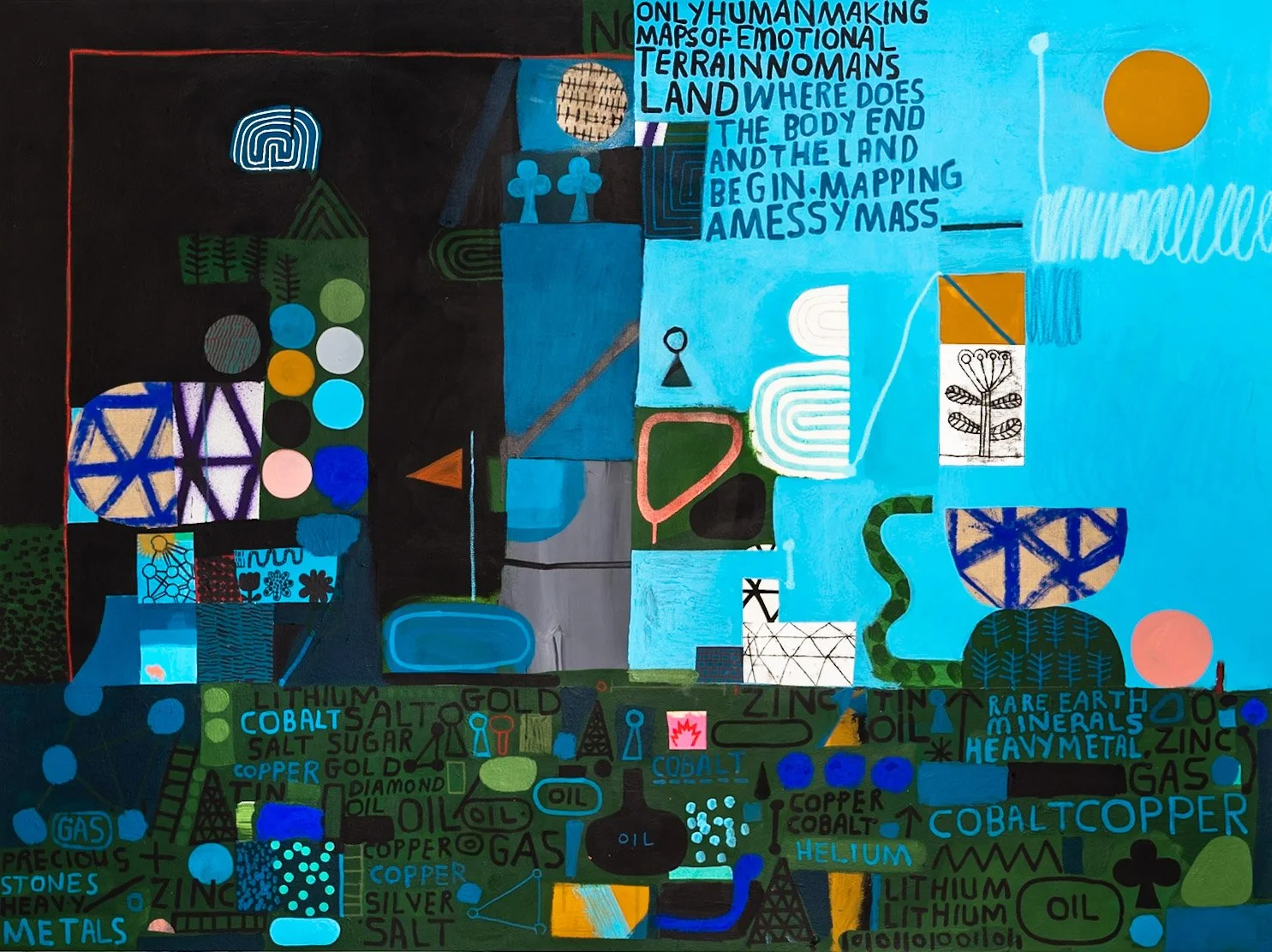Using a unique visual language, the works celebrate vulnerability, humor, and the struggle with the very fact that we live in these chaotic and uncertain times. “We are both the problem and the solution,” says Shillinglaw, as he wrestles with the world, poking at paradoxes and leaning into ideas of forgiveness — of ourselves, the generations before us, and the generations to come — for the damage done to each other and to the planet. Empathy becomes the guiding force, drawing maps that use compassion as a compass.
