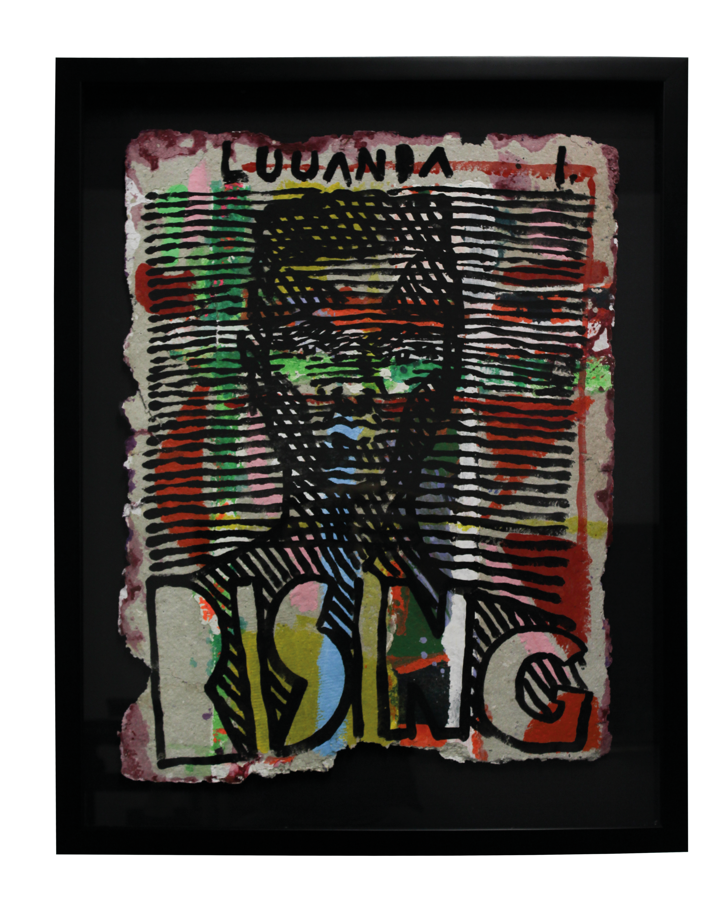 These new spoken concepts, in constant evolution, always welcoming and mixing new native terms - KIEKELELA, giving in to dance in Kimbundo_NOVA LUANDA _ Nova Lisboa _ o Umbundo_, each one with its particular origin and dense signification, have found its cradle in paper and its embodiment in painting, revealing the second of Vidal’s fundamental structural pillars: the visual signs. _NAMEDROPING FOR THE AFRICAN INDUSTRIAL REVOLUTION_ ,the artist shaped a fluid and intuitive style of work, as the Jazz that influences him so much. His language doesn’t follow a fix or linear order and its visual signs search the same higher plane of freedom of the words, which are projected in space through installations in constant mutation.