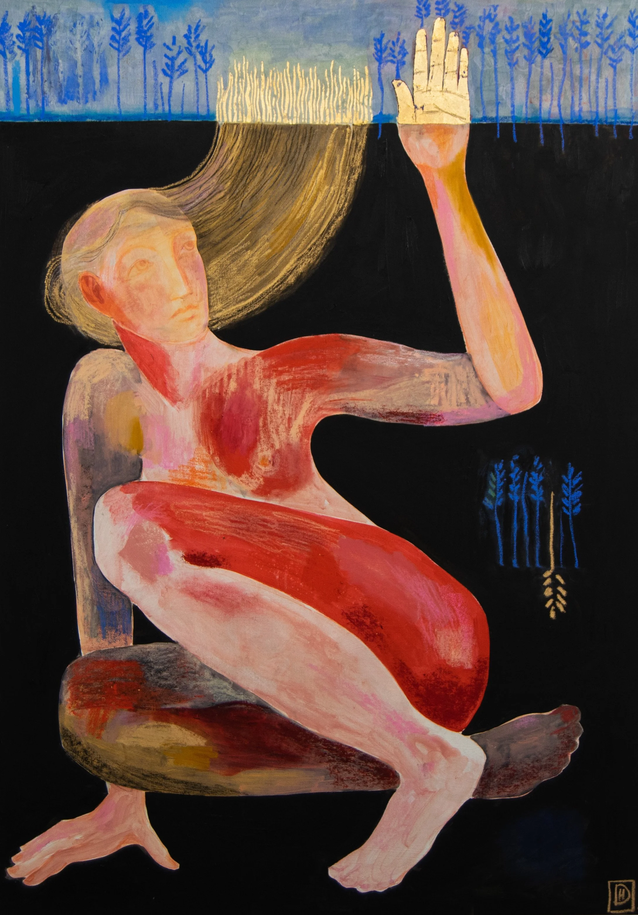 Born in Germany in 1992 and raised in the countryside of southern Spain, Delia Hamer’s work opens a portal into a dreamlike realm where the personal and the mythological intertwine. Her paintings emerge from deep psychological landscapes — reflections of inner journeys that resonate with universal emotions.