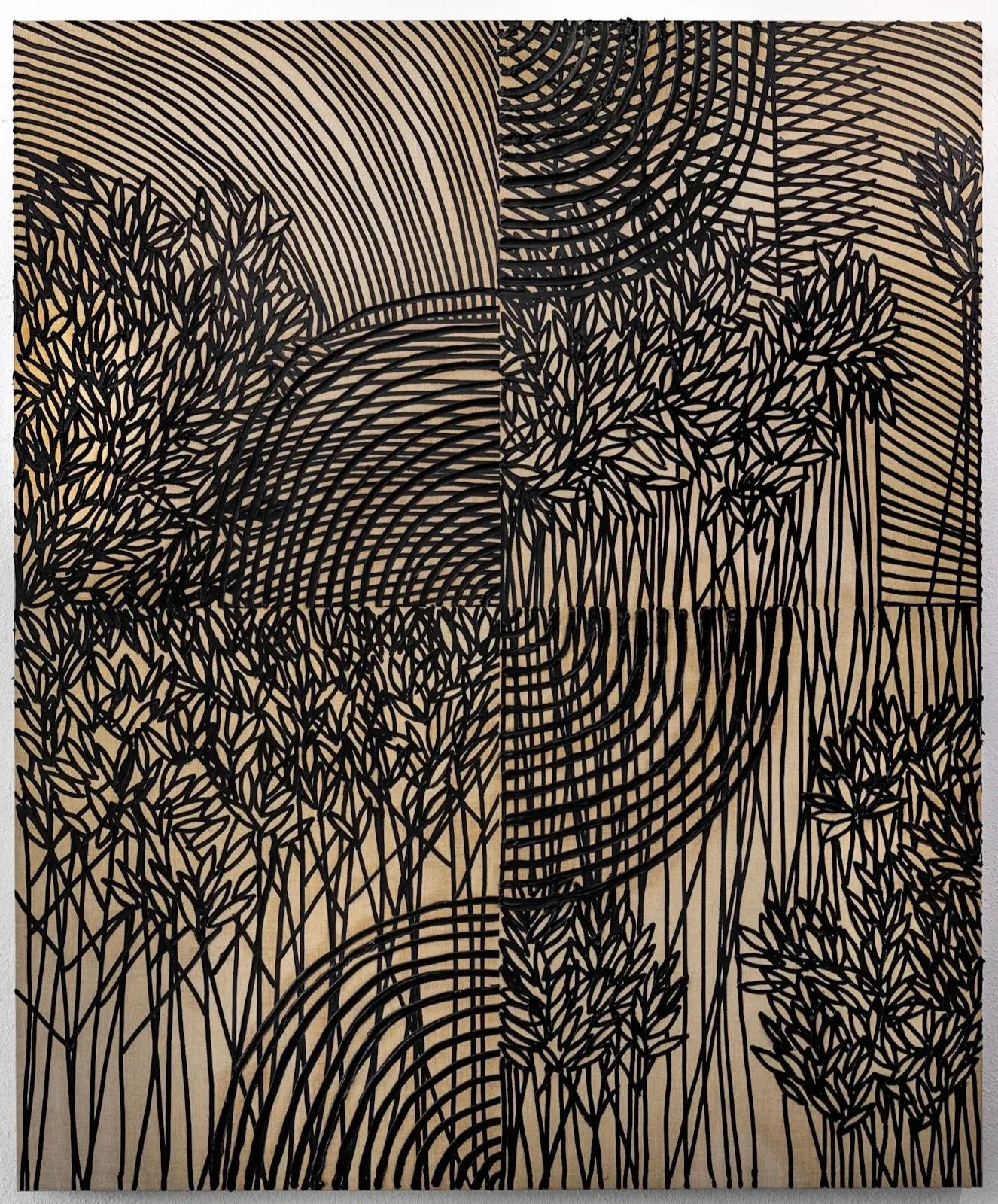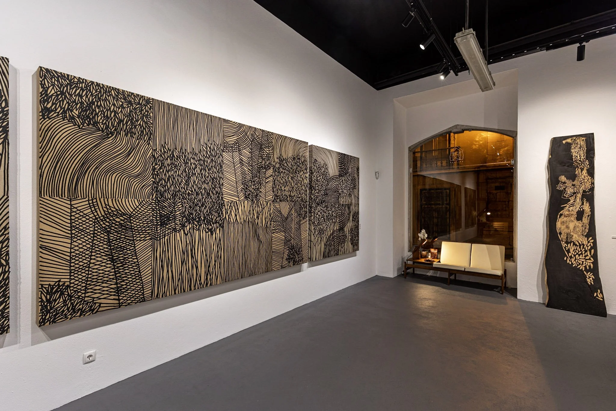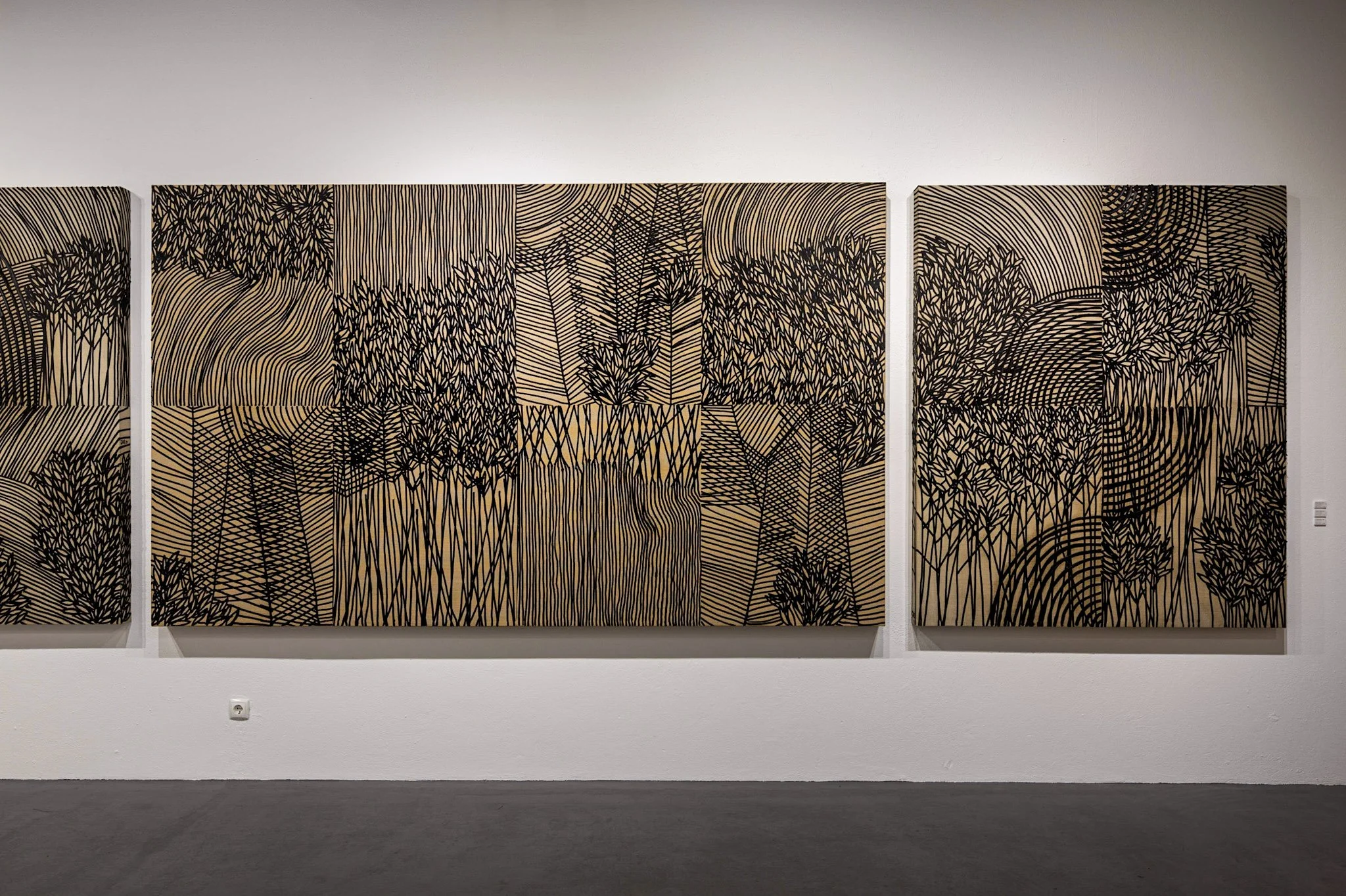 Black forest arose as a nascent way to solve a permeating anxiety. The attack formed a more primitive shot where the brushes no longer matter. The gesture starts to come straight out of a thick and honeyed ink tube to a rough and brown support that symbolizes the earth or the bark of a tree.