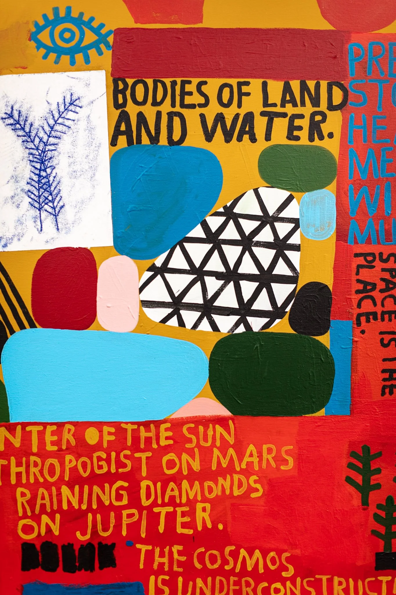 Using a unique visual language, the works celebrate vulnerability, humor, and the struggle with the very fact that we live in these chaotic and uncertain times. “We are both the problem and the solution,” says Shillinglaw, as he wrestles with the world, poking at paradoxes and leaning into ideas of forgiveness — of ourselves, the generations before us, and the generations to come — for the damage done to each other and to the planet. Empathy becomes the guiding force, drawing maps that use compassion as a compass.