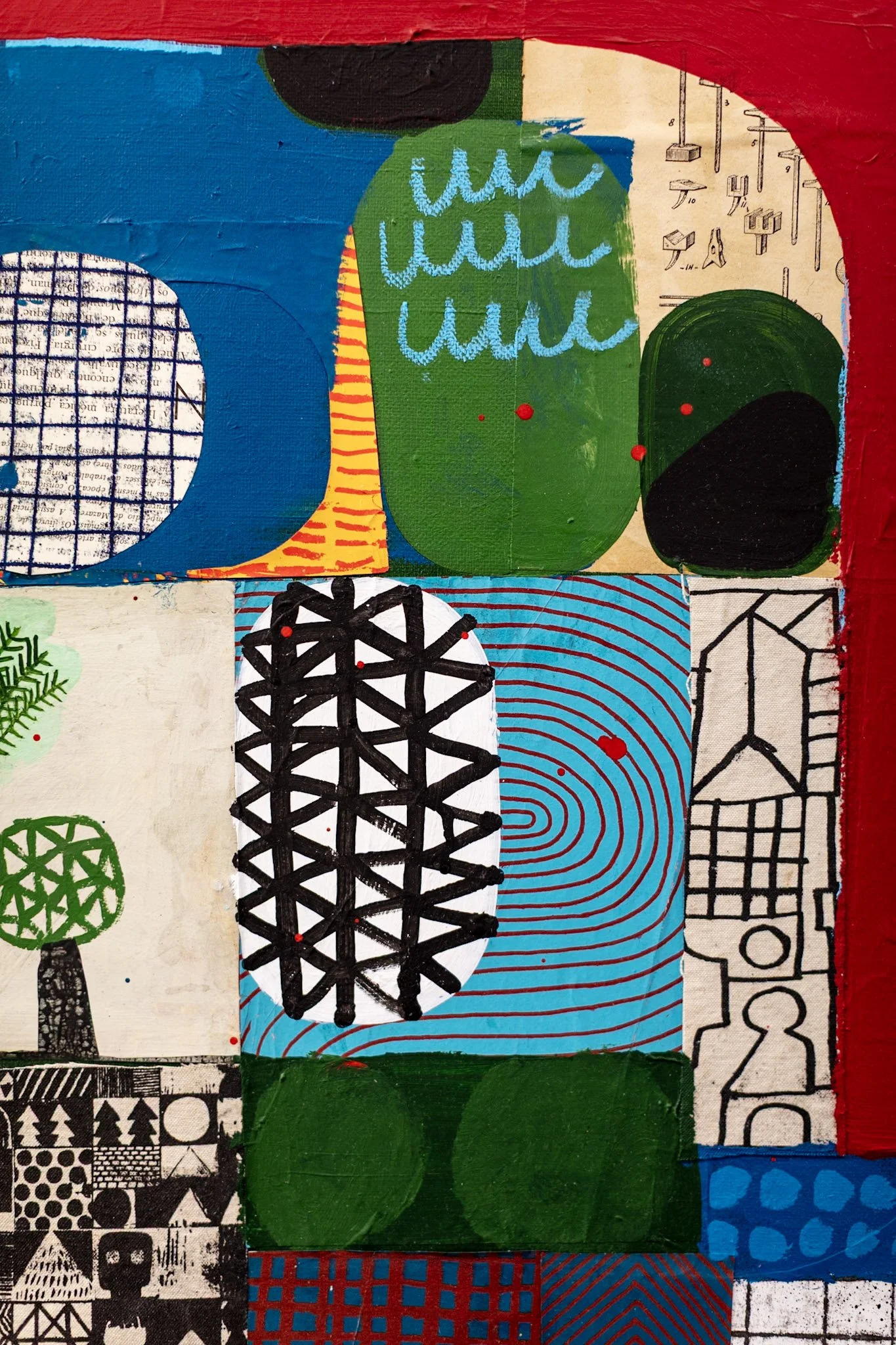 Working across painting, drawing, collage, and installation, he constructs vibrant and vital compositions that reflect the contradictions of contemporary life — where freedom and confinement, clarity and confusion, humour and anxiety coexist. His works are structured yet spontaneous, mapping the tension between control and disorder, safety and uncertainty, mirroring our collective search for meaning in a world that resists definition.