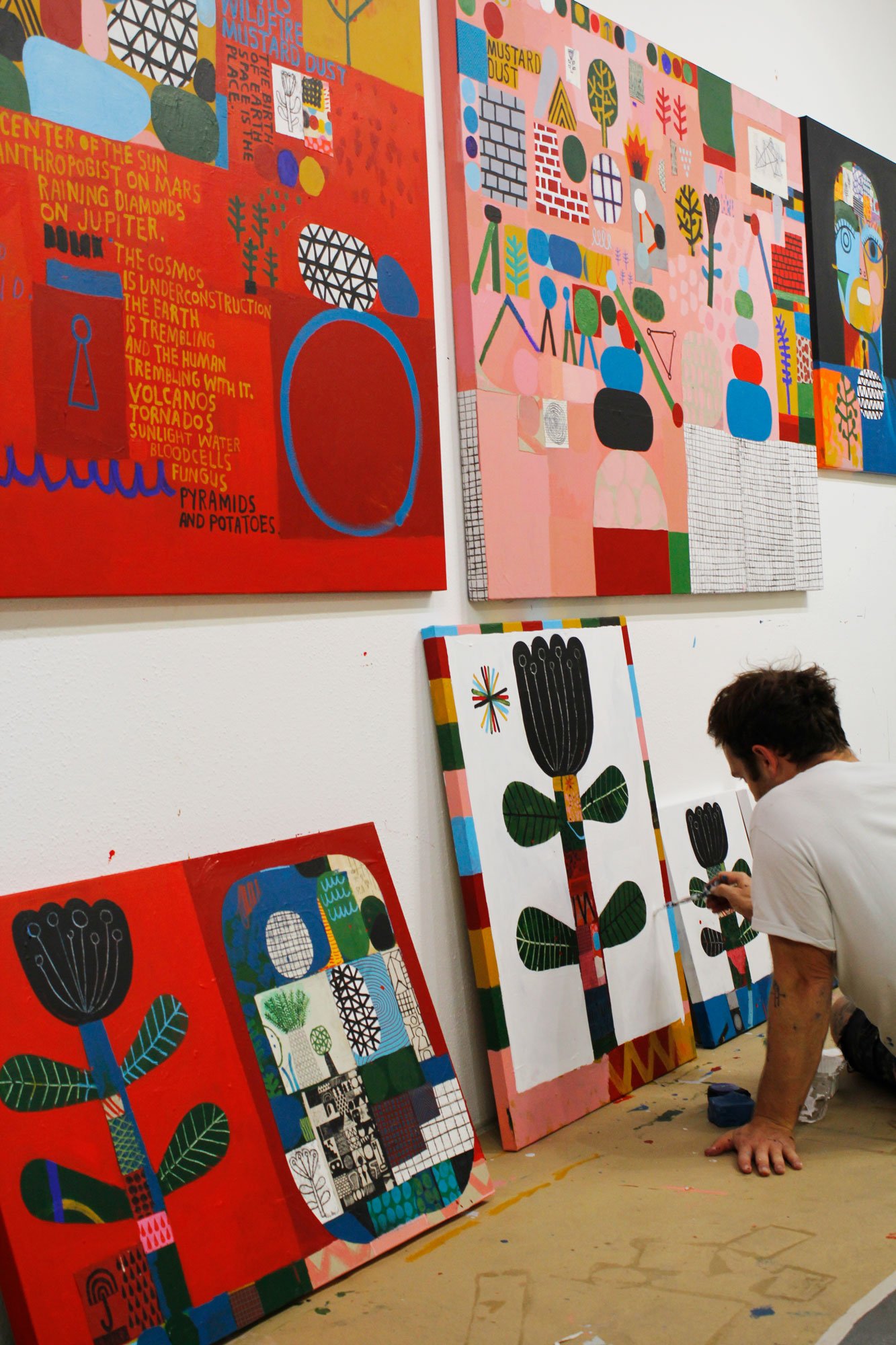 Using a unique visual language, the works celebrate vulnerability, humor, and the struggle with the very fact that we live in these chaotic and uncertain times. “We are both the problem and the solution,” says Shillinglaw, as he wrestles with the world, poking at paradoxes and leaning into ideas of forgiveness — of ourselves, the generations before us, and the generations to come — for the damage done to each other and to the planet. Empathy becomes the guiding force, drawing maps that use compassion as a compass.