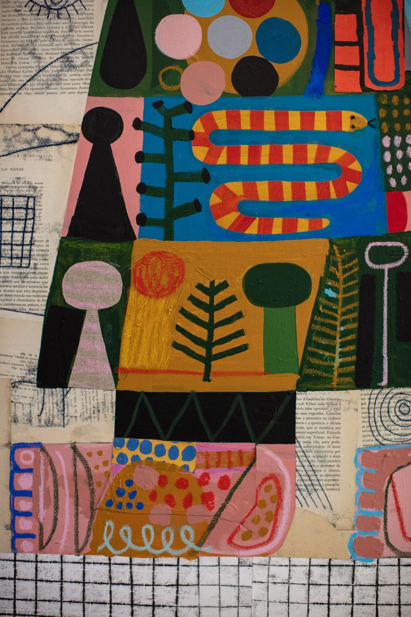 Working across painting, drawing, collage, and installation, he constructs vibrant and vital compositions that reflect the contradictions of contemporary life — where freedom and confinement, clarity and confusion, humour and anxiety coexist. His works are structured yet spontaneous, mapping the tension between control and disorder, safety and uncertainty, mirroring our collective search for meaning in a world that resists definition.